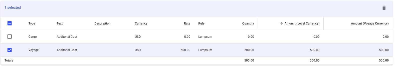 Delete Various Cost/Revenue