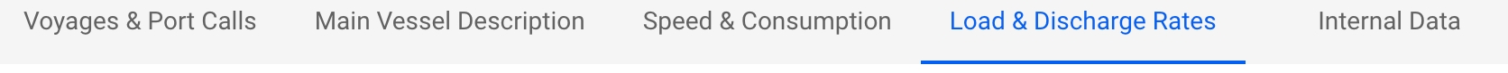 The Load and Discharge rates section is an an overview of the load and discharge rates applicable for ports and terminals. It must not be mixed with the vessels' max load and discharge rates.