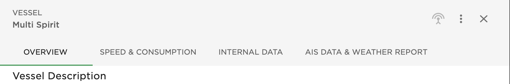 Vessel "AIS Data and Weather Report" data can be accessed in the top tab menu.